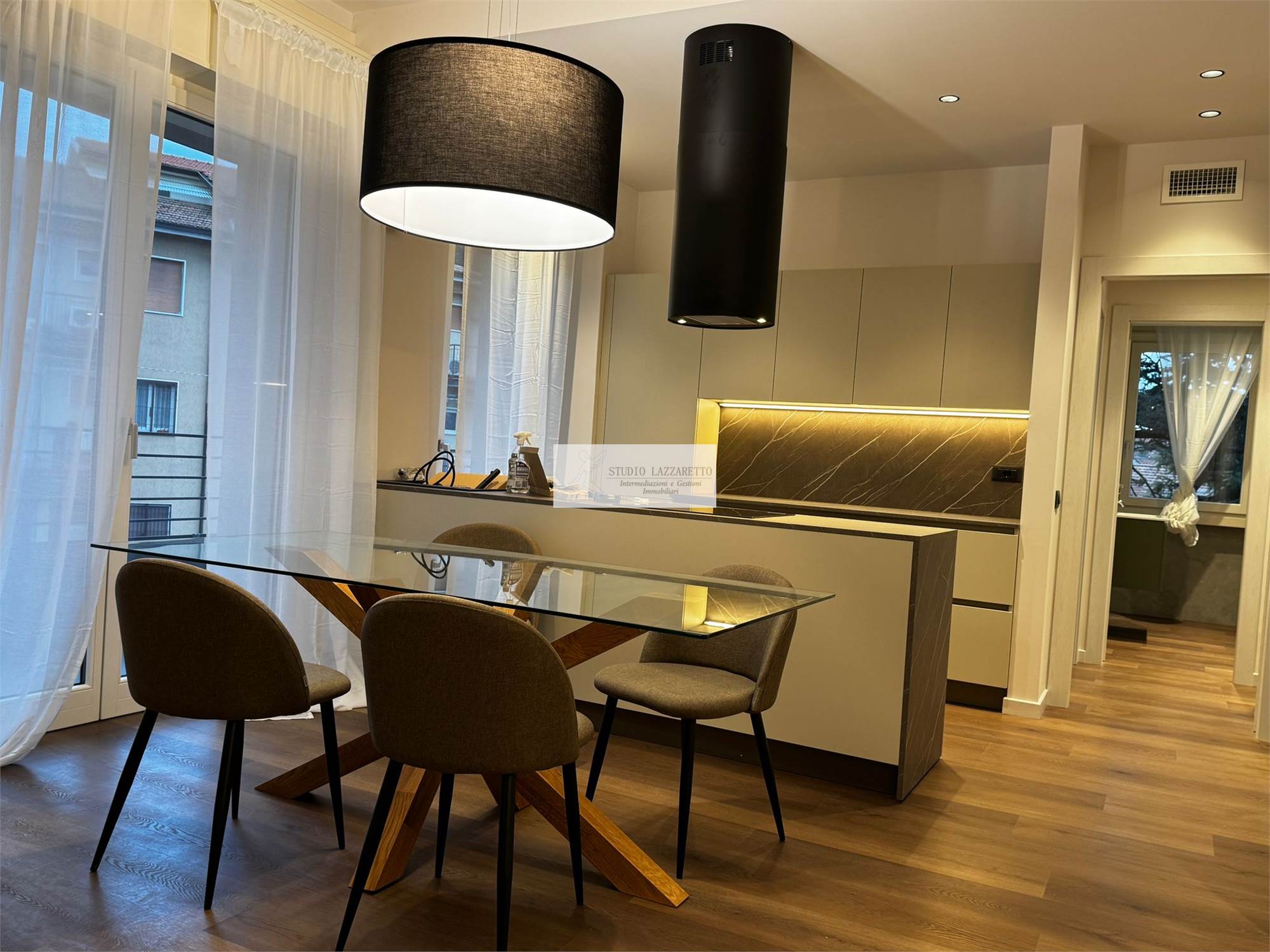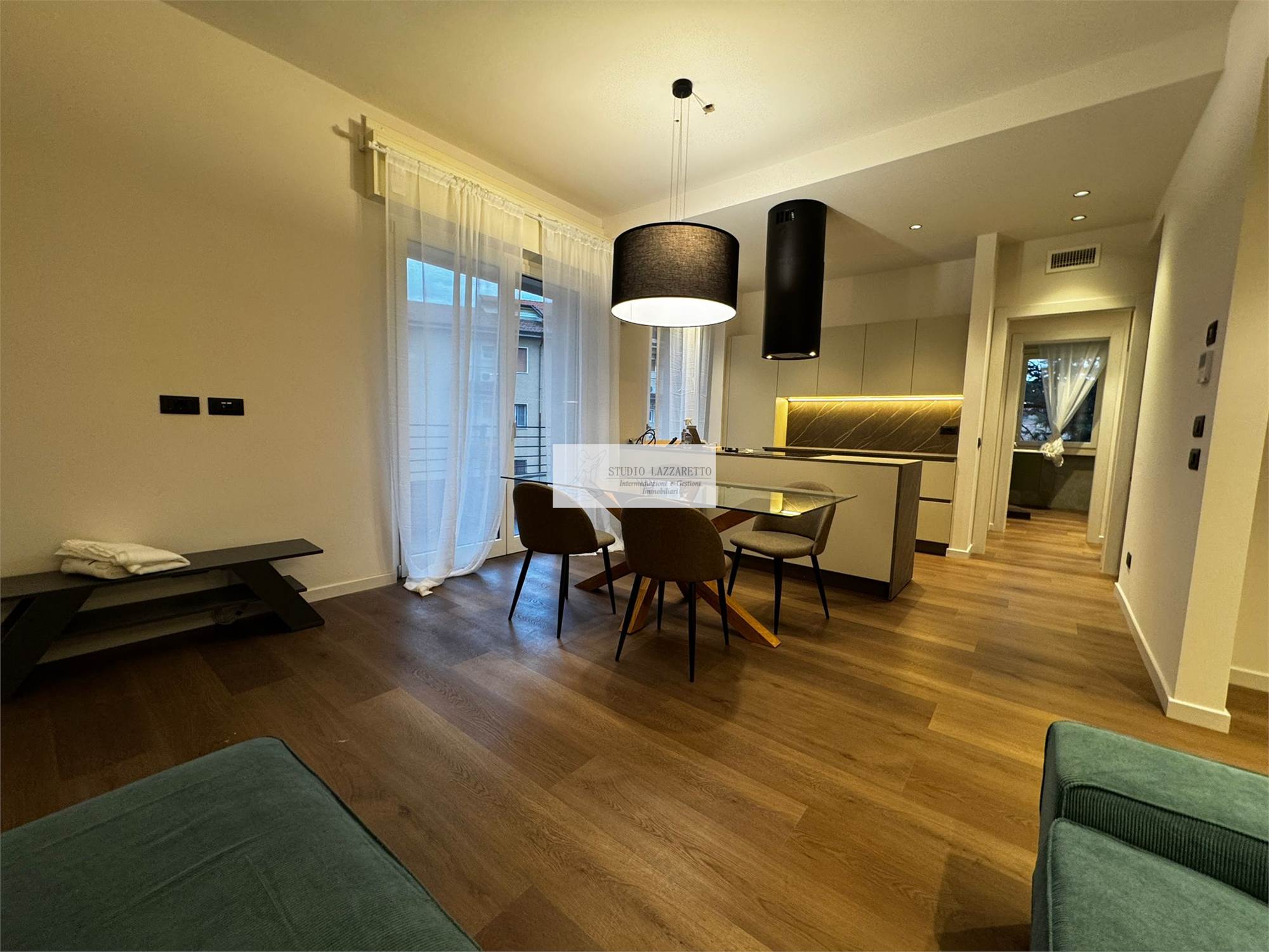 L'appartamento è arredato a nuovo con cucina Veneta Cucine, elettrodomestici in classe energetica A++: piano a induzione, forno, frigorifero e lavastoviglie. Completa l'arredo l'arredo della zona giorno il tavolo da pranzo, le sedie e la poltrona.