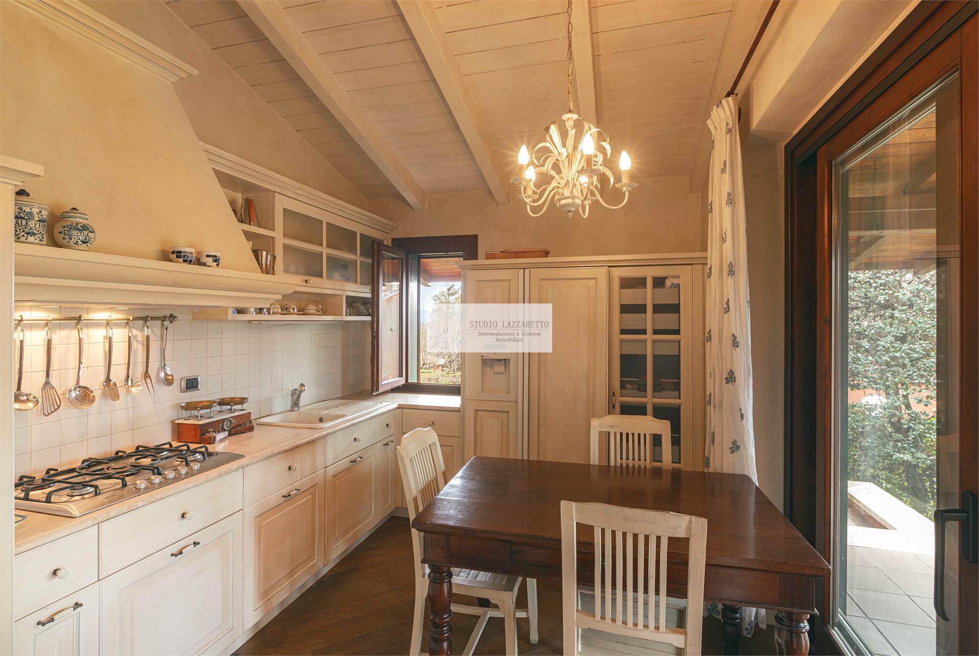 Cucina separata, moderna e attrezzata, con accesso al portico completa il piano la